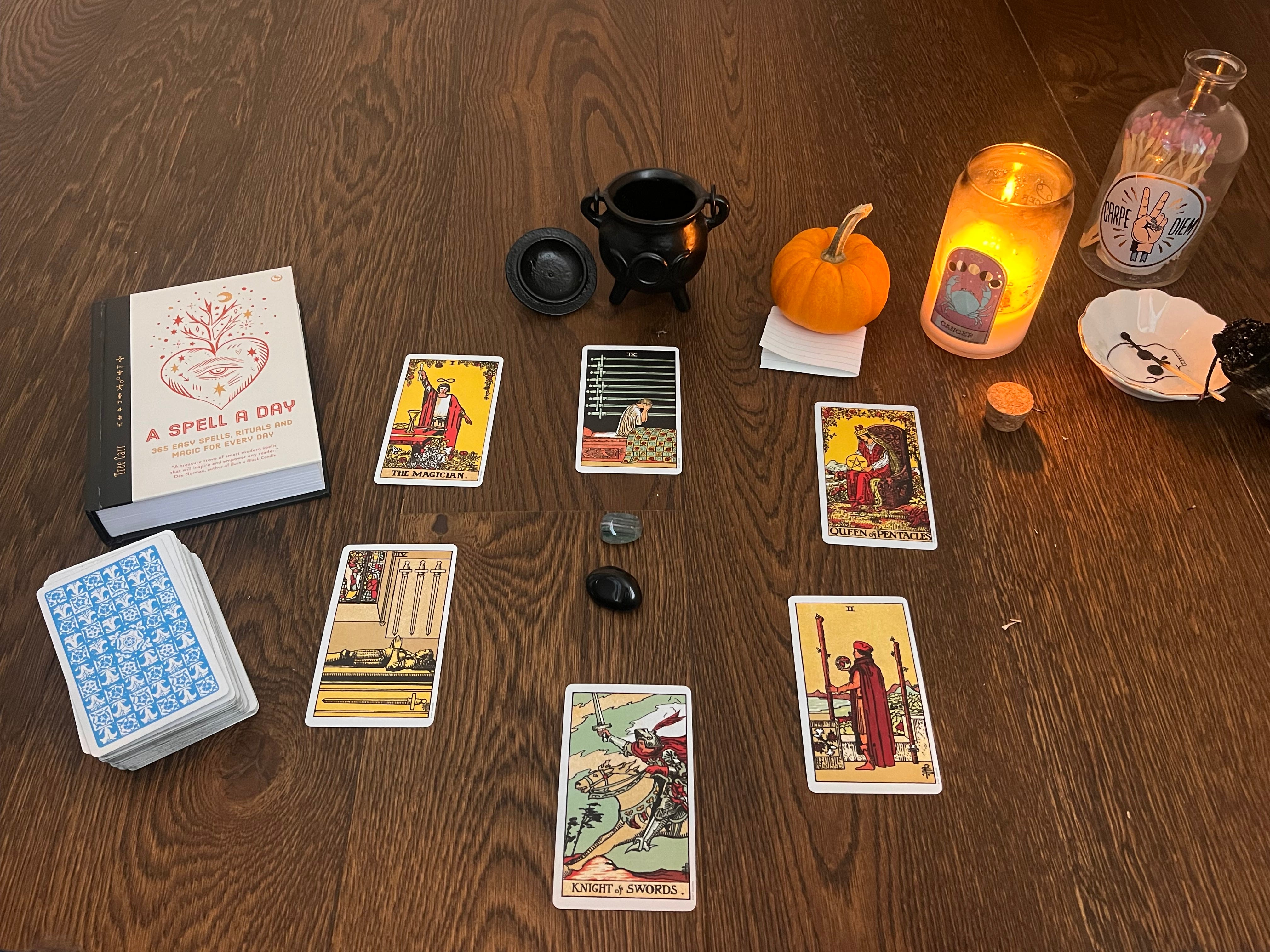 But now that I am weaving my baby witch-ness into my work life, October has that same feel - only as Witch Christmas or, more technically and correctly, the observance of Samhain and its associated rituals. This month has brought a plethora of goodness, from a spooky szn Girl Hike collab with Anna Willatt of Esoteric Isle, to pulling tarot at the SheSays Night School Graduation, to meeting new folks and deepening my tarot practice with the one and only Cult Mother as part of the inaugural Samhain Society down here in Margate. Not to mention the general Halloween antics that a transplanted American must get up to in the UK: immortalising Gloria in the form of a pumpkin; ensuring that I have enough candy for trick or treaters and watching The Nightmare Before Christmas as my annual Halloween ritual.